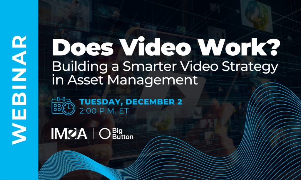 In this exclusive IMEA webinar, Simon Crofts, Client Services Director at strategic video agency Big Button, shares data-driven insights and strategic guidance to help firms elevate the effectiveness of their video marketing efforts. Drawing on independent research from Moving Image and Big Button’s own experience producing campaigns for leading financial brands, the session examined: