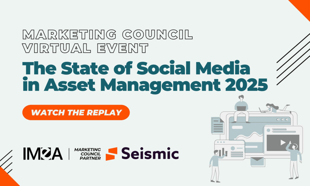 A replay of today’s IMEA Marketing Council Virtual Event, The State of Social Media in Asset Management, is now available. Hear from Nate Isaacson of Seismic and Jim Keenan of AMG as they discuss best practices that can help strengthen firms through social media.
